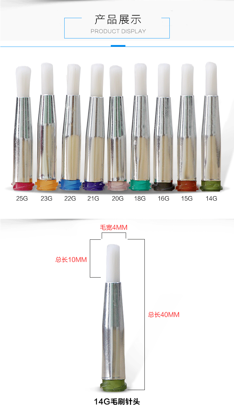 毛刷針頭主要針對不同面積涂膠的產品工藝,具有涂膠均勻、不堆膠、不斷膠,適合大面積表面刷圖膠液;毛刷為尼龍材質,韌性佳,不斷毛,不 掉毛,軟毛接觸產品,安全可靠,極大的提高生產效率!