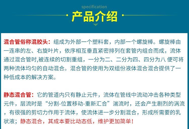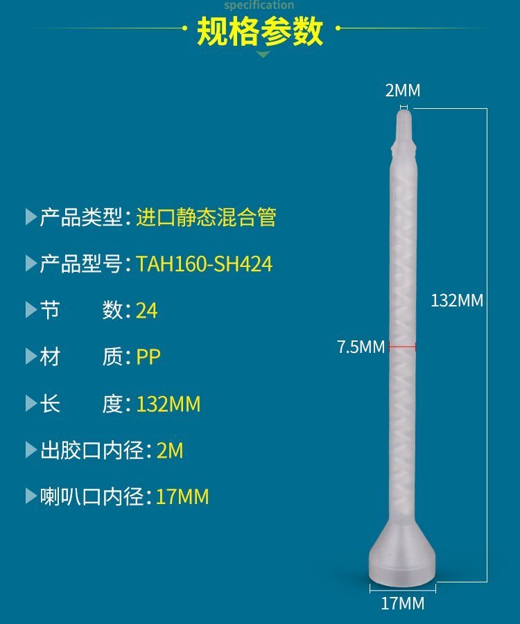 進(jìn)口TAH160靜態(tài)混合管AB混膠管混料竿螺旋管混膠嘴混膠器螺旋管芯