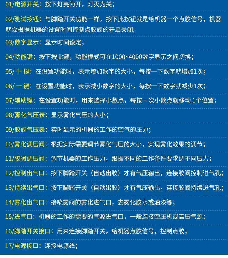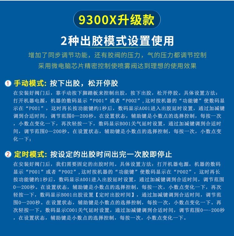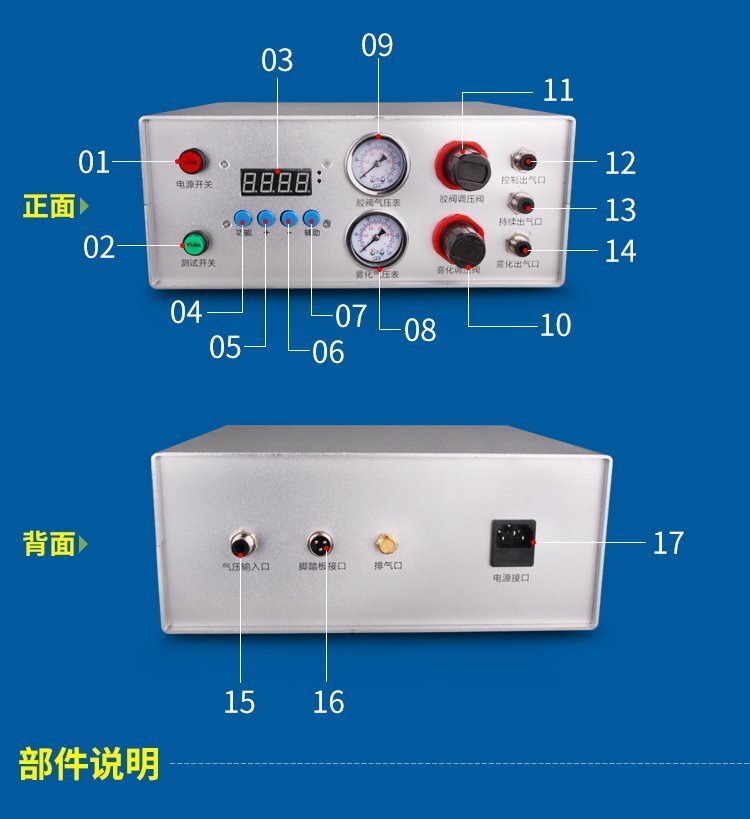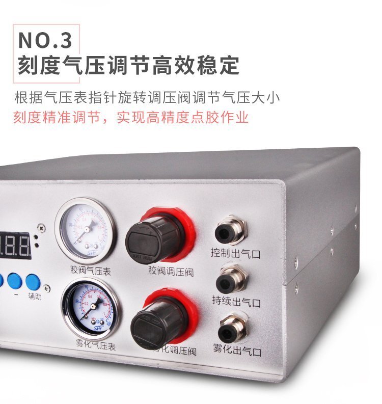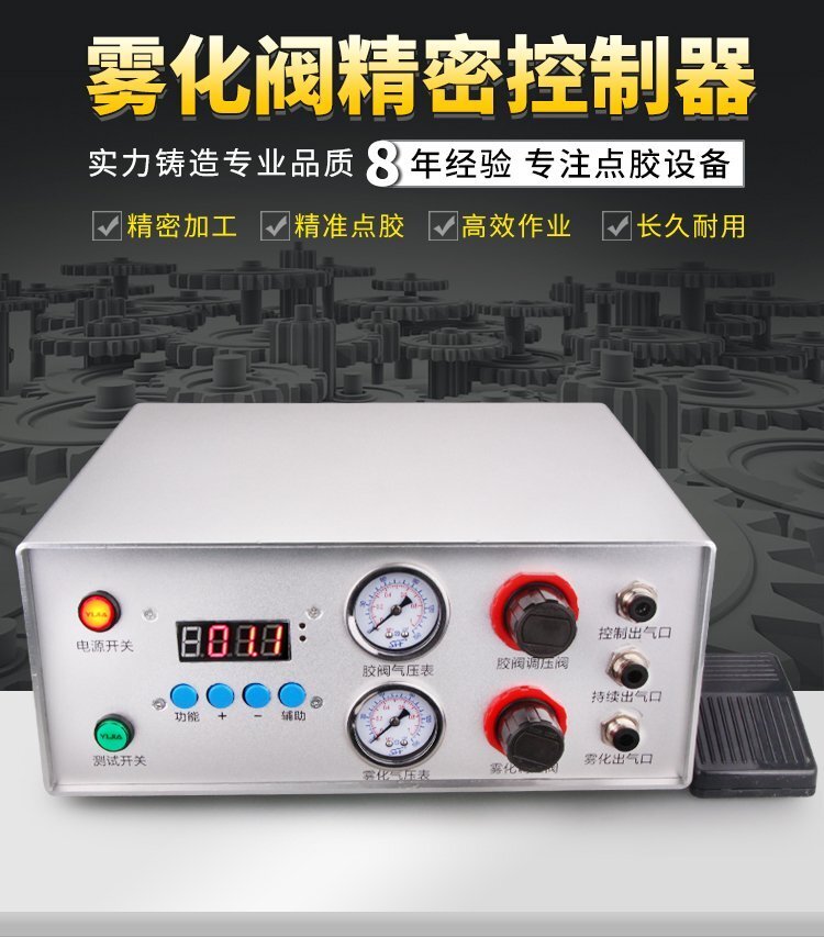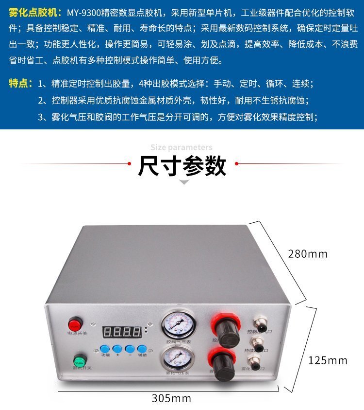 MY—9300精密數(shù)顯點(diǎn)膠機(jī),增加了霧化出氣口,霧化調(diào)節(jié)閥等功能,專門配合噴霧 閥使用;依然采用最新單片機(jī),工業(yè)級器件配合優(yōu)化的控制軟件,具有控制穩(wěn)定、精準(zhǔn)、實(shí)用、 壽命長等特點(diǎn);使用最新數(shù)碼控制系統(tǒng),定時(shí)定量吐膠精確一致,功能模式多,人性化簡易操作,穩(wěn)定高效,降低成本,省工省時(shí);采用鋁合金外殼,不生銹防腐蝕,適合工程/工廠長期生產(chǎn)使用;有大量現(xiàn)貨供應(yīng),歡迎咨詢采購!