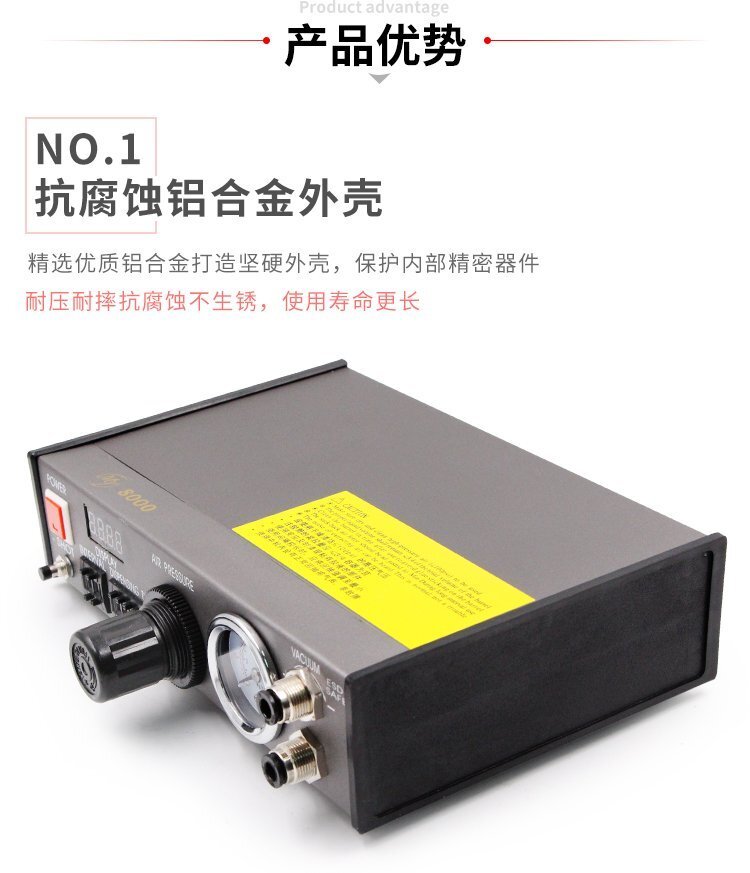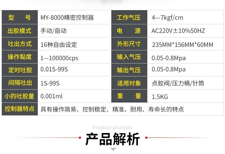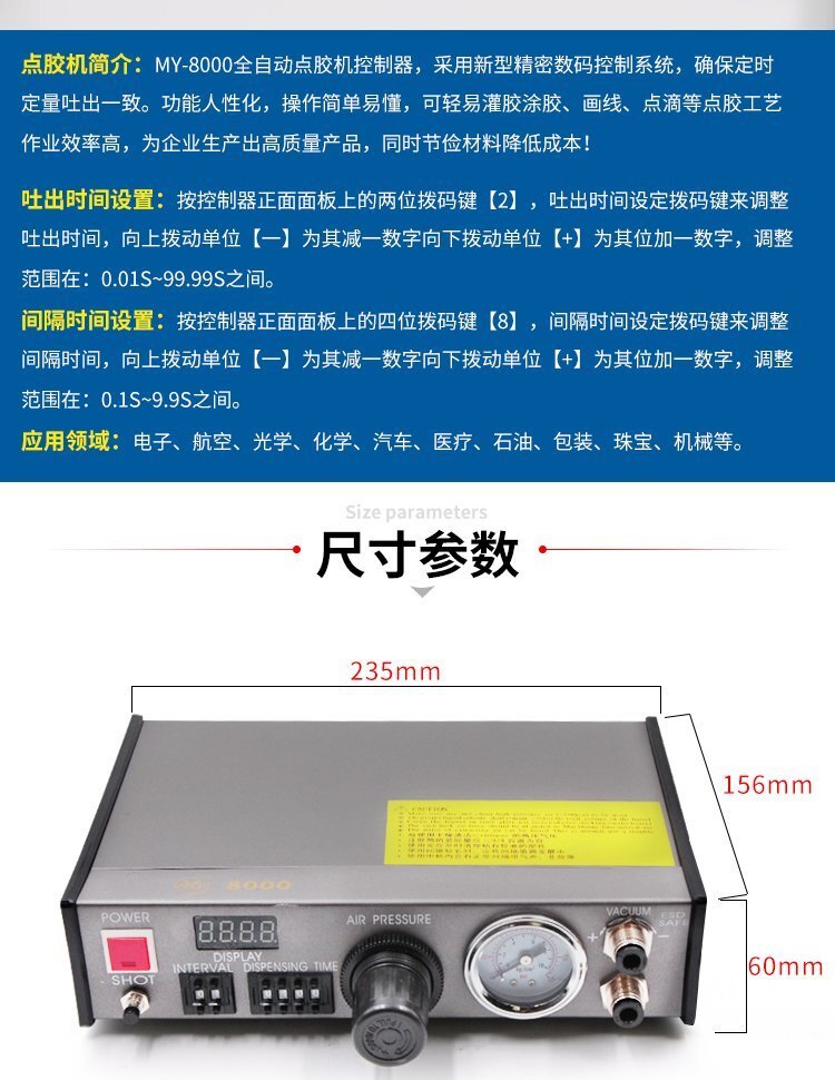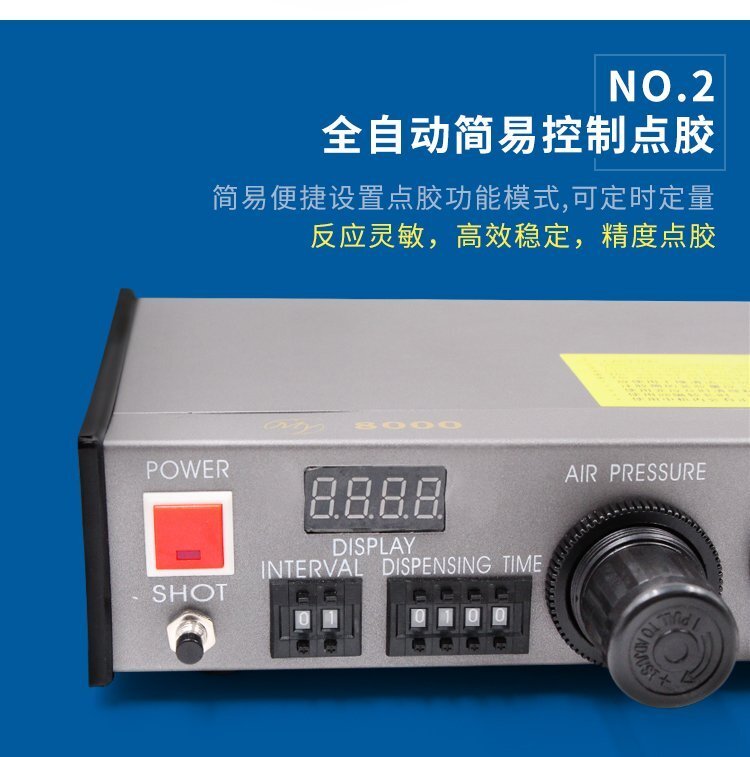 MY—8000全自動(dòng)點(diǎn)膠機(jī),采用0.18CV恒流量電磁控制閥,持續(xù)出膠時(shí)間可達(dá)99秒, 4位吐出時(shí)間編程器撥碼開關(guān),可作16種吐出模式選擇;在高壓空氣設(shè)定時(shí)間內(nèi),使用腳踏開關(guān)控制將膠液推出,可調(diào)整手動(dòng)或半自動(dòng)狀態(tài);高精度數(shù)碼定時(shí)控制器,精確控制膠液流量,達(dá)到不浪費(fèi)節(jié)約成本的目的,具有控制穩(wěn)定、出膠精準(zhǔn)、使用壽命長(zhǎng)等特點(diǎn),適合工程/工廠長(zhǎng)期生產(chǎn)使用;有大量現(xiàn)貨供應(yīng),歡迎咨詢采購(gòu)!