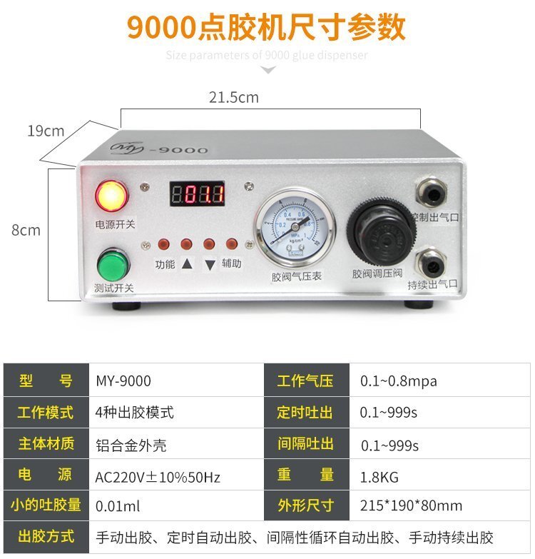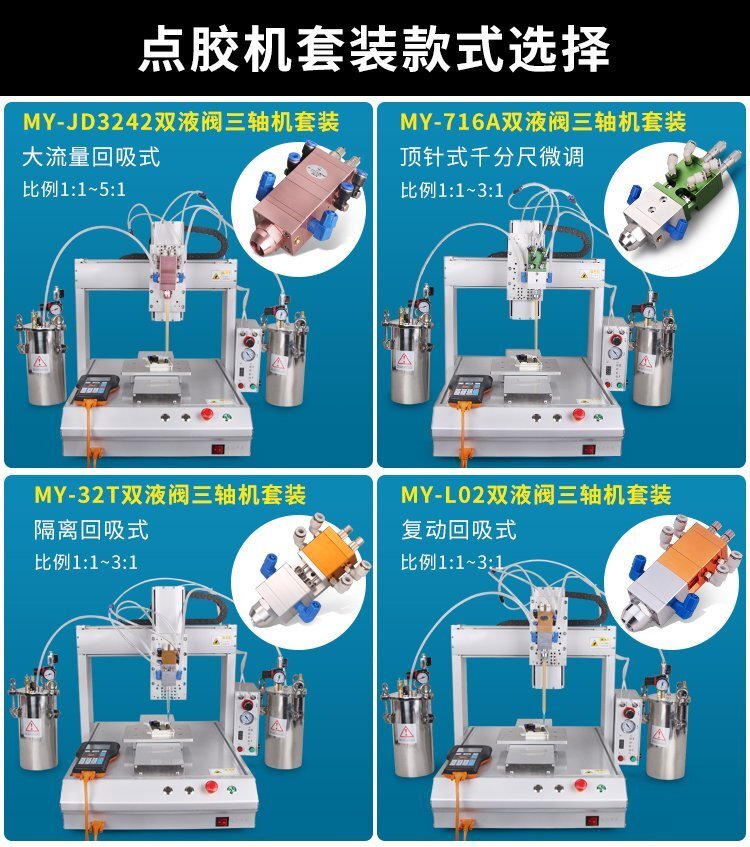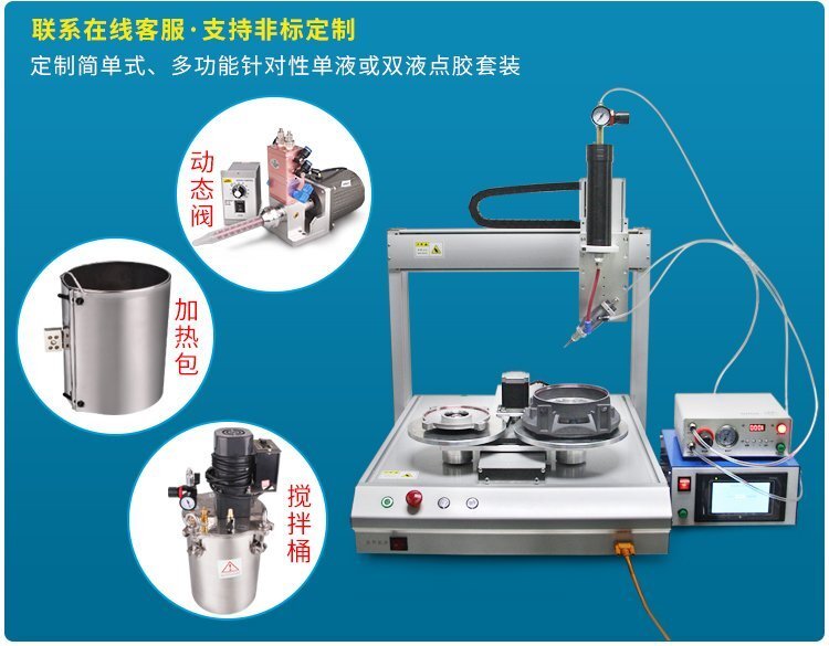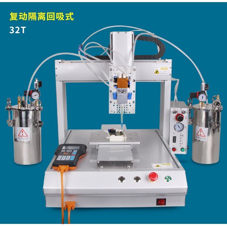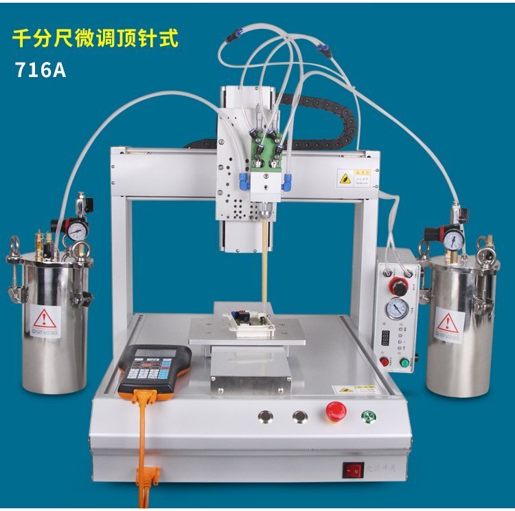 點膠機又稱涂膠機、滴膠機、打膠機、灌膠機等,專門對流體進行控制。并將流體點滴、涂覆于產品表面或產品內部的自動化機器,可實現三維、四維路徑點膠,精確定位,精準控膠,不拉絲,不漏膠,不滴膠。點膠機主要用于產品工藝中的膠水、油漆以及其他液體精確點、注、涂、點滴到每個產品精確位置,可以用來實現打點、畫線、圓型或弧型。