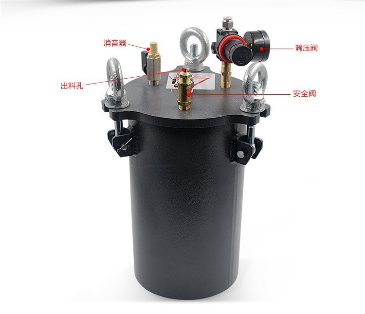 標配桶出廠時蓋子上有四個2分牙孔位,分別為:一個安全閥、一個調壓閥、一個排氣閥、一個出料孔;壓力桶使用碳鋼材料,耐腐蝕性強,加厚的桶壁和桶蓋,安全有保證,在作業中可以放心使用(碳鋼桶出膠口在上部時,建議不要將膠水直接倒進壓力桶內,可選用不銹鋼內桶或將膠水包裝桶再放進去使用);適合工程/工廠長期生產使用;有大量現貨供應,歡迎咨詢采購!